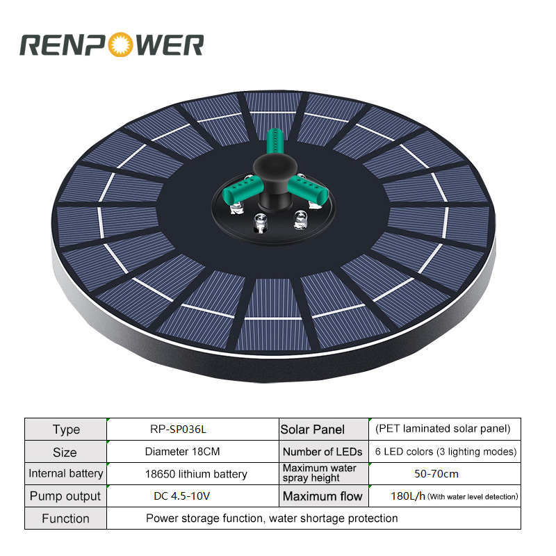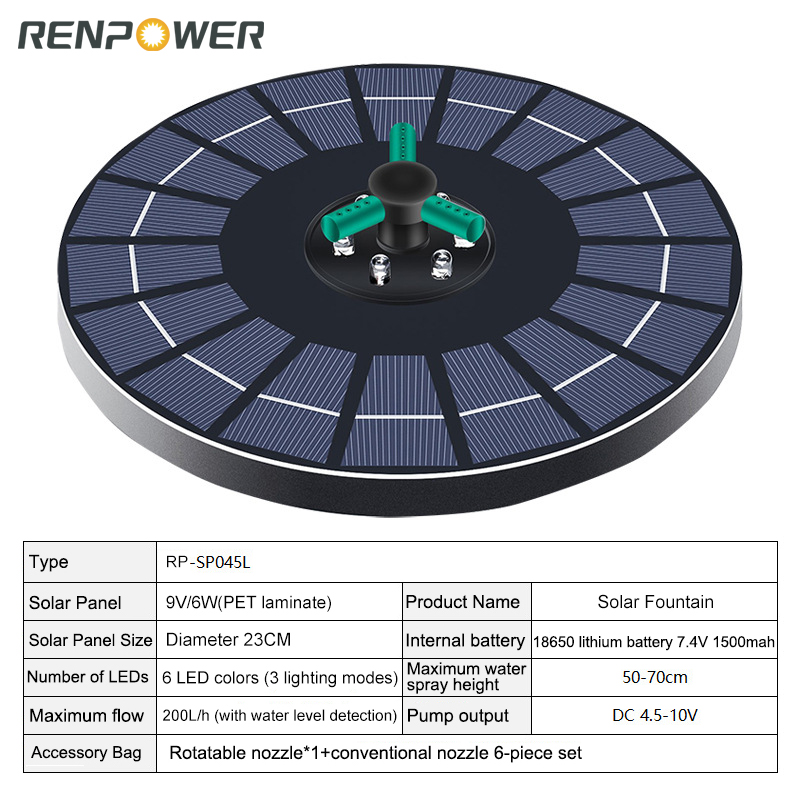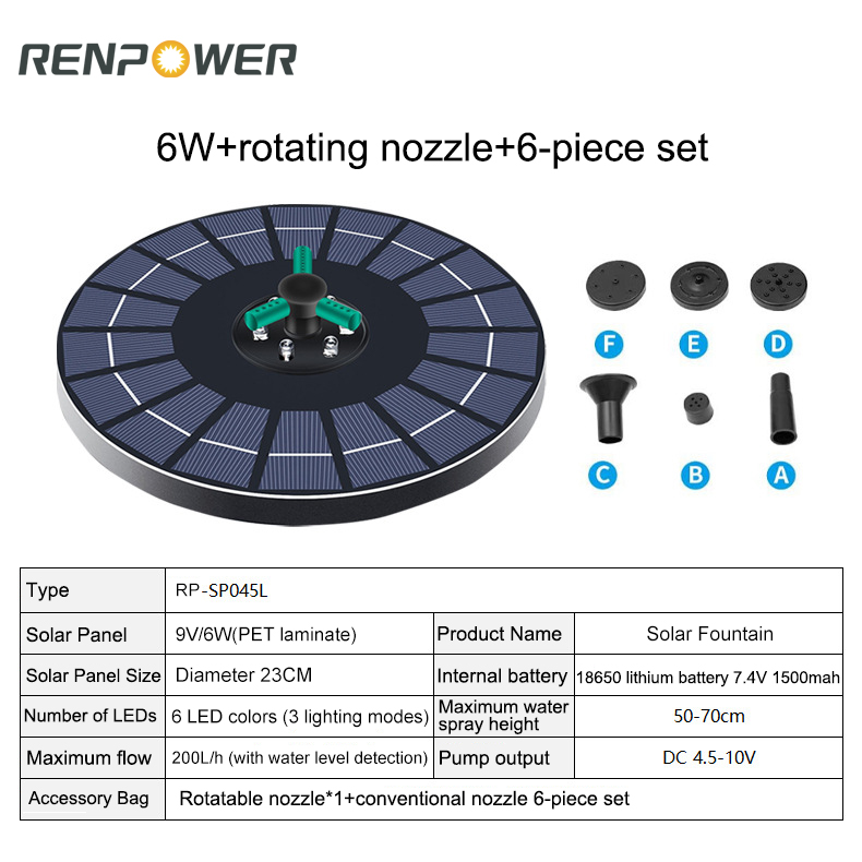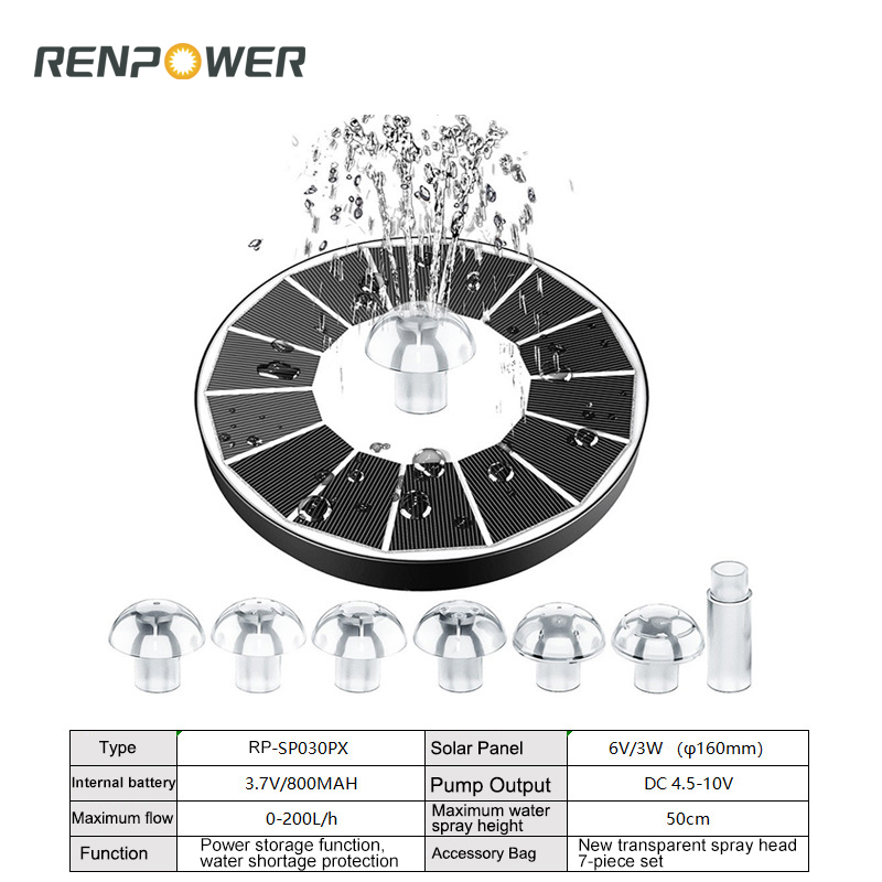 Vườn năng lượng mặt trời thu nhỏ 1.5W DC Fountain PumpĐài phun nước mặt trời là một thiết bị đài phun nước cảnh quan sử dụng năng lượng mặt trời để điều khiển bơm nước để bơm nước. Sản phẩm này sử dụng các tấm pin mặt trời hiệu quả cao và máy bơm nước không chổi than mới, có lợi thế của khởi động nhanh, hiệu quả cao và sự ổn định mạnh mẽ. Ngoài ra, sản phẩm không yêu cầu nguồn điện bên ngoài. Nó không chỉ dễ dàng cài đặt và vận hành, mà còn an toàn, đáng tin cậy, tiết kiệm năng lượng và thân thiện với môi trường. Sản phẩm được sử dụng rộng rãi ở những nơi như đài phun nước hồ bơi, đài phun nước rockery và lưu thông nước bể cá.